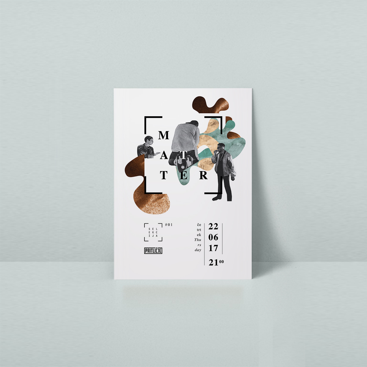 The posters for summer outdoor concert series visualize the colorful summer heat vibe and the electronic music beat. The image of the musician melts into a collage of color abstractions. Music is the melting pot; a space where variety of races, cultures, or individuals blend together in the same rhythm. Let's melt with the music!